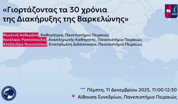 Πρόσκληση – Εκδήλωση: «30 Χρόνια από τη Διακήρυξη της Βαρκελώνης»